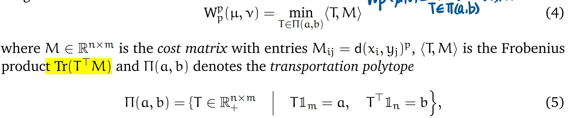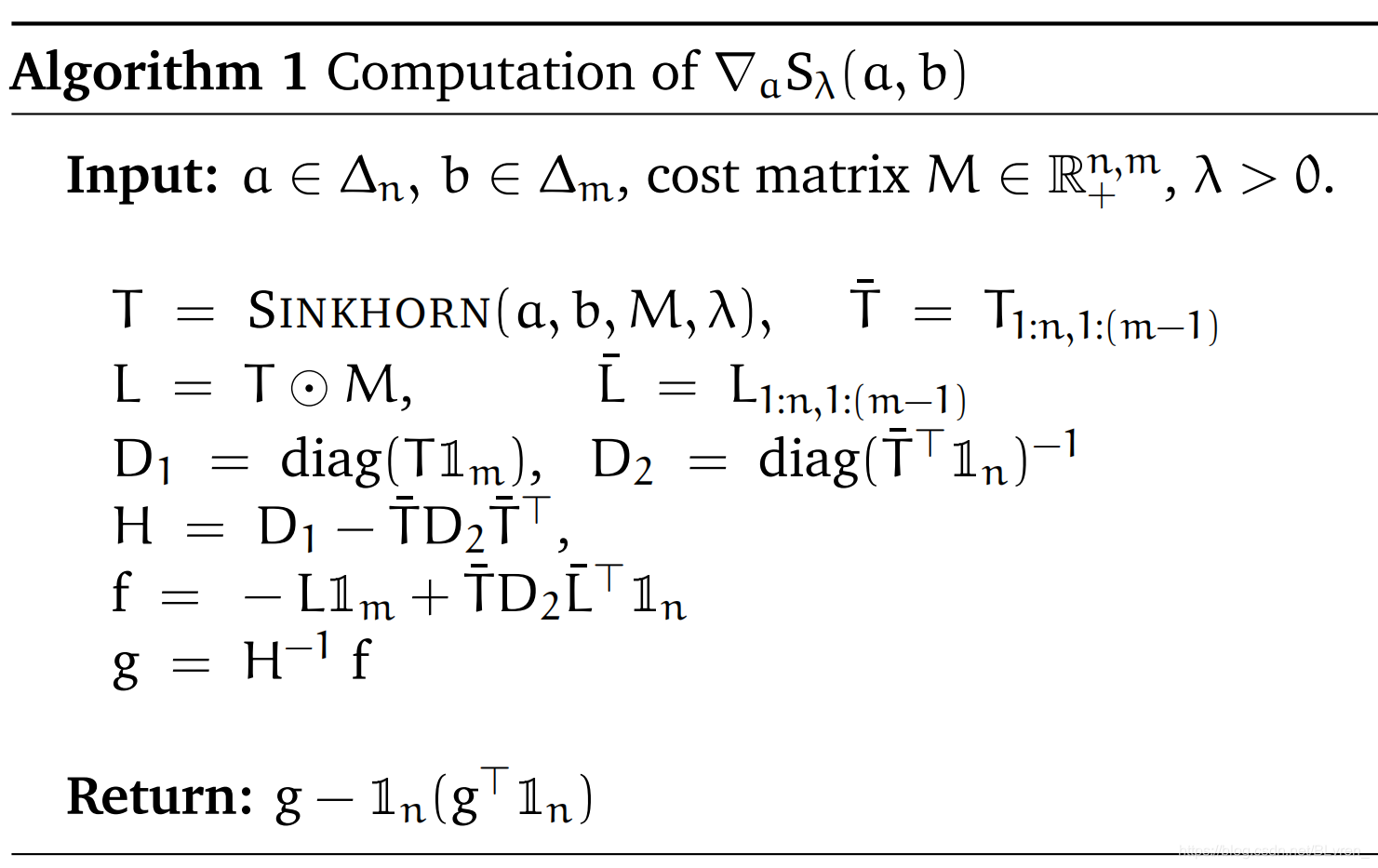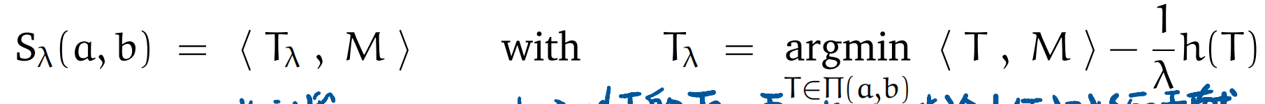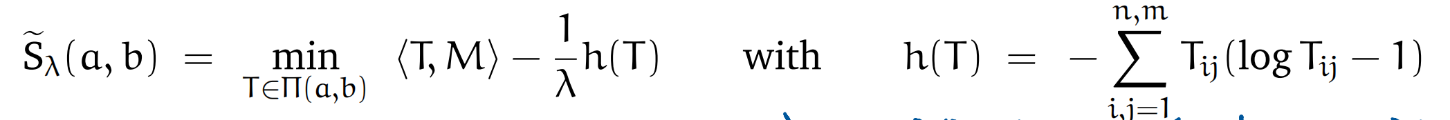 Regularized Sinkhorn distance Regularized version (加了信息熵项,更容易计算,且对于a,b可微)