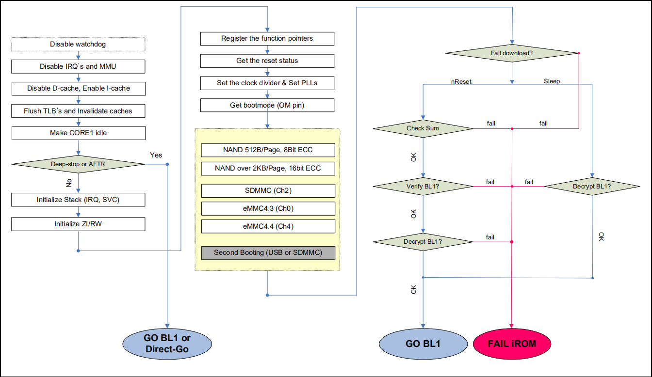 前面我们知道了iROM的主要作用就是初始化芯片,根据OM引脚选择启动介质,将BL1从启动介质加载到内部RAM,然后就开始执行BL1,下面我们来看看BL1是什么。