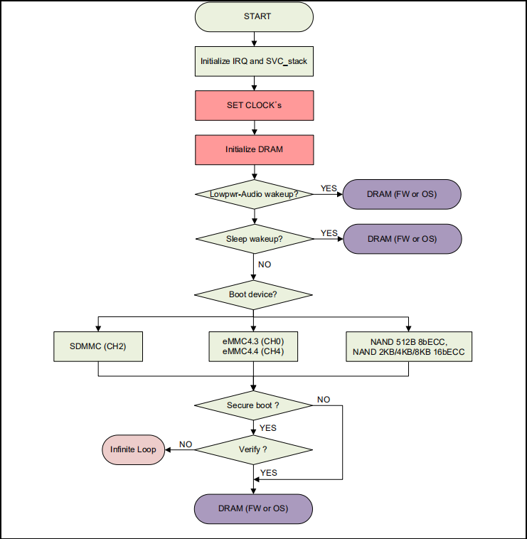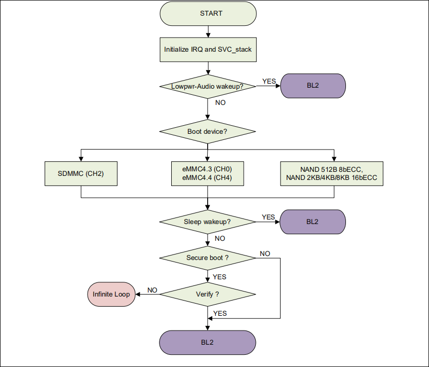 我们肯定会猜到,既然有BL1,那么应该也有BL2,是的没错。实际上BL1的作用就是为了引导BL2,那为什么这样做呢?这其实是出于安全考虑,手册中把这种boot方式叫做:secure boot chain,安全引导链,那么这种引导方式到底安全在哪里呢,看看BL1和BL2的关系就应该明白了。