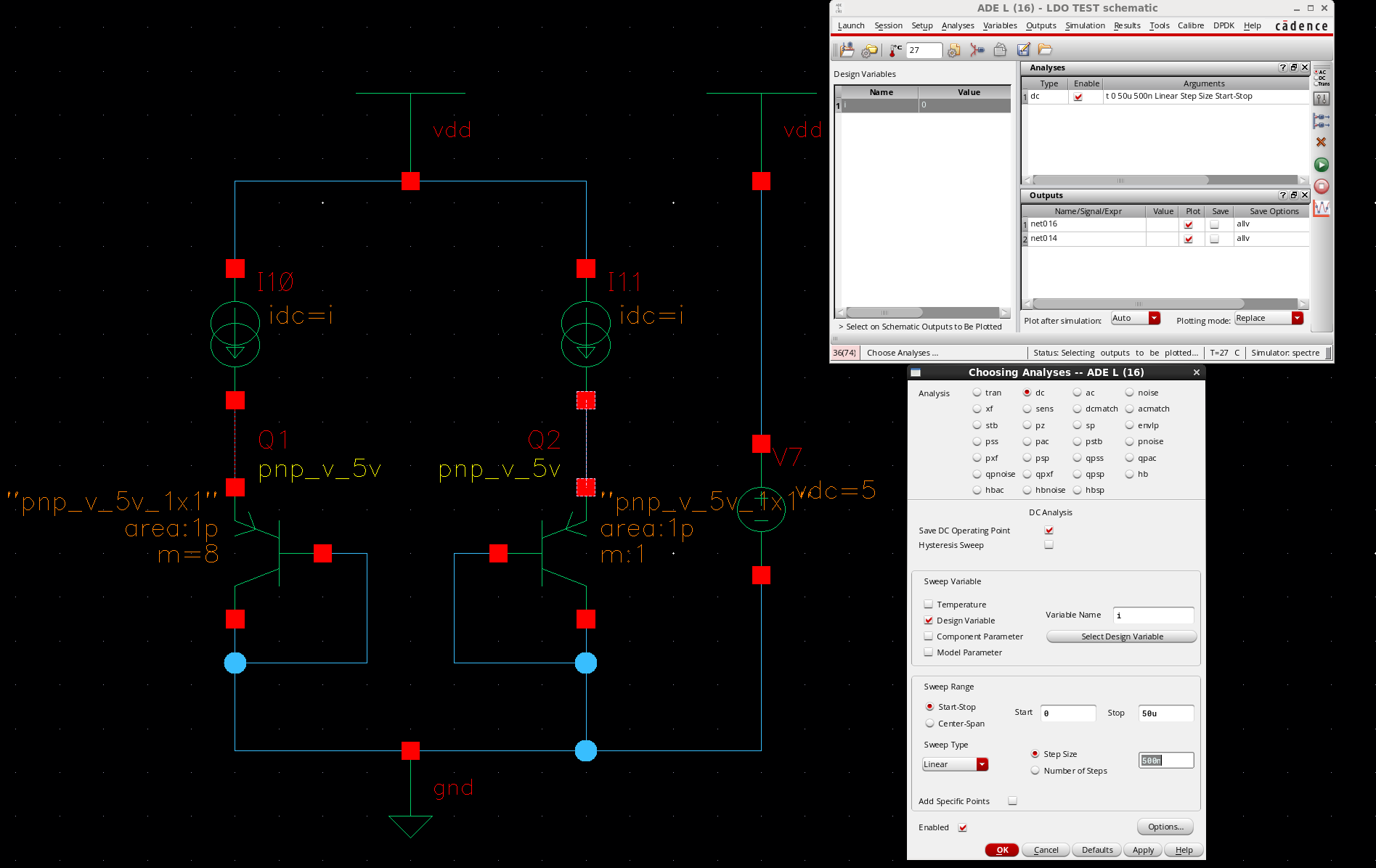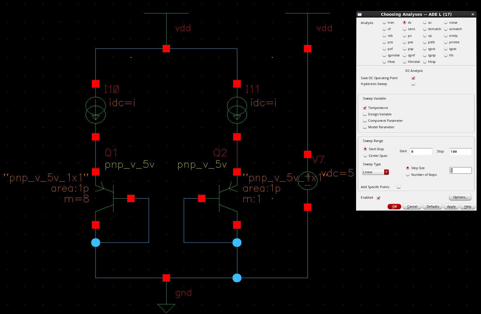 搭建如图仿真电路图,设置idc=i,ADE窗口选择Variables-copy from cellview,如图仿真。