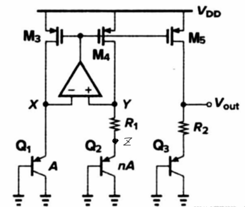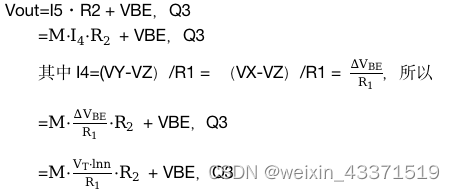 其中负温度系数电压VBE不变,其权重是1,需要用前面的正温度系数电压来抵消,从而实现零温度系数,可以看出lnn越大,那么R2/R1就可以取小,相反lnn越小,R2/R1就要取的大一些,总之要满足:M··R2=17.2。(这里不清楚为什么是17.2的话,可以看一下书本)