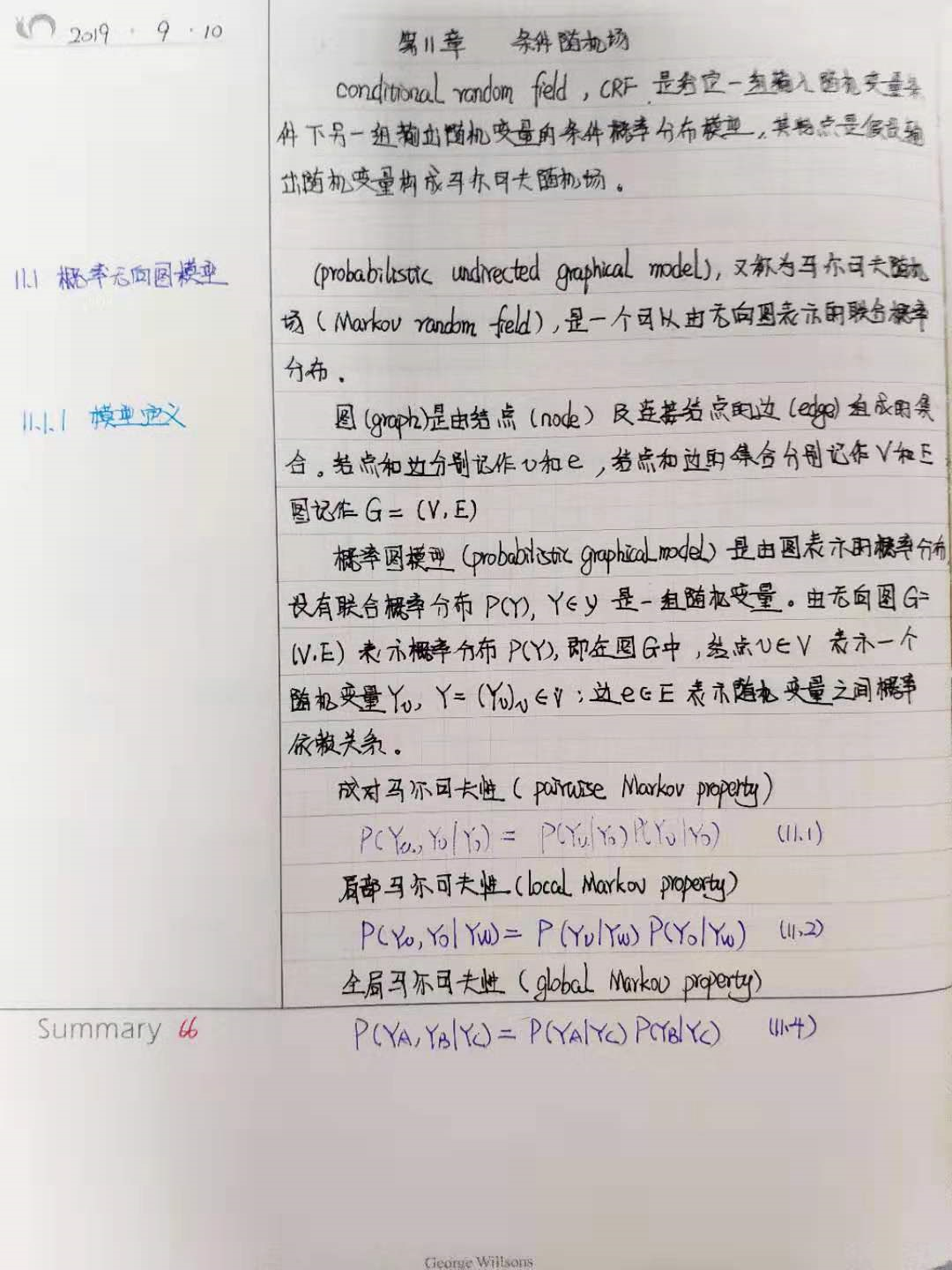 [Read]XXI00142《统计学习方法》第11章 条件随机场 笔记