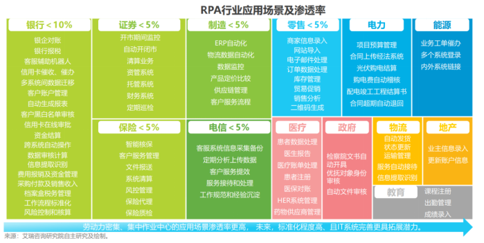 图3 艾瑞咨询汇总的RPA行业应用场景及渗透率