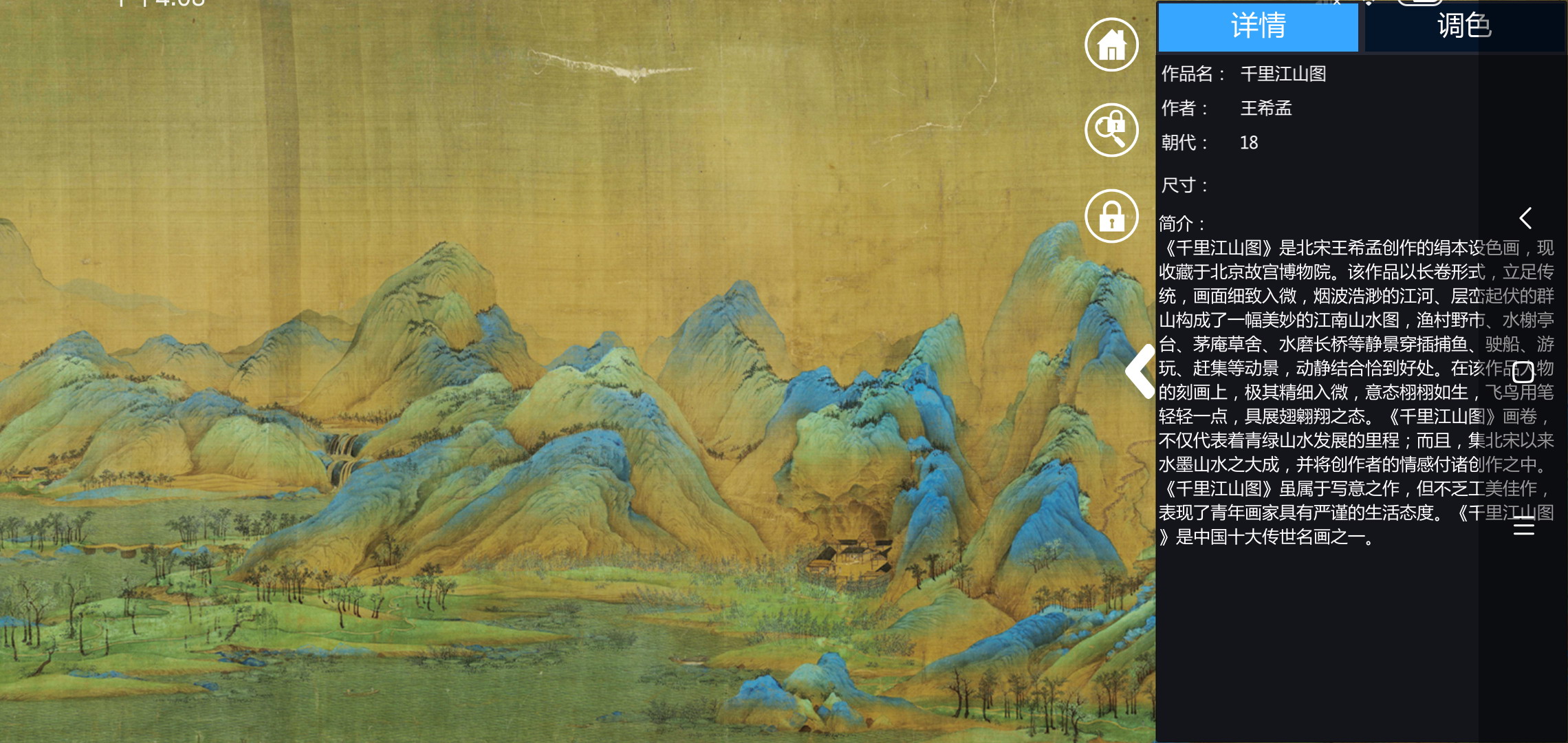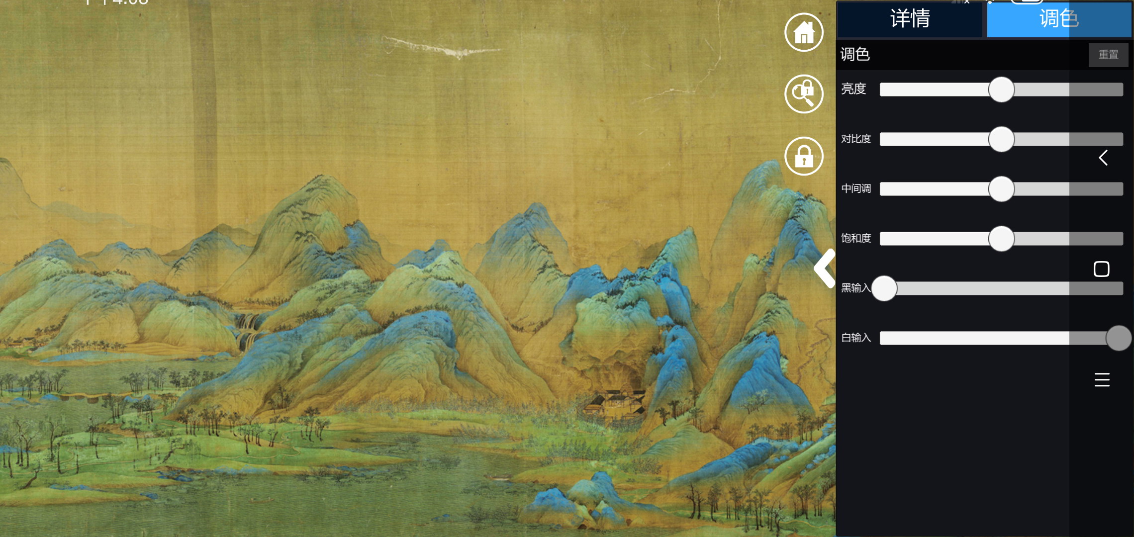 调色功能:鉴于艺术作品年代久远,很多作品可能会出现色彩改变的现象,应用内
