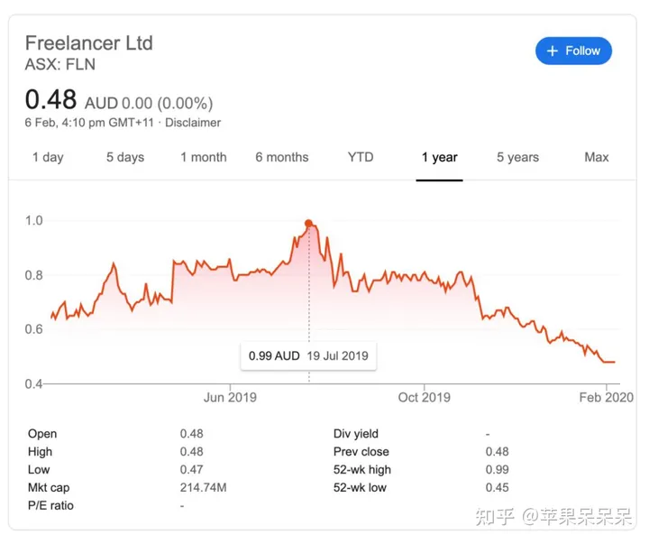 不过,作为上市公司的 freelancer,近半年的公司股价却在持续走低... 具体原因在此就不多做分析了,毕竟 GitHubDaily 公众号不是荐股平台。