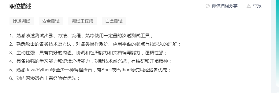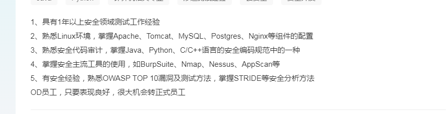 我们先看看市场上招聘网络安全工程师都需要哪些技术: