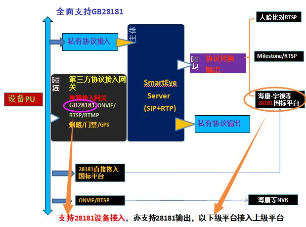 VMS/smarteye平台支持第三方的国标协议的设备接入,该实现机制是一个前置的视频接入协议网关的软件插件的形式。其实现的功能是smarteye平台作为一个国标主平台,让其他的国标协议的设备接入。