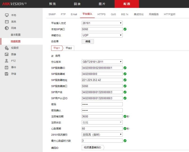 2、Sip服务器ID:平台提供,一般都是20位的,如果是其他位数,必须向平台技术确认是可以使用的。