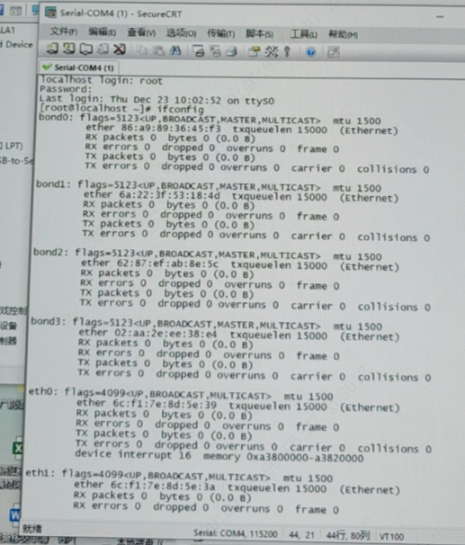 二、问题描述:VMS-B230设备因为取消聚合或者其他异常操作导致地址不通,串口连接输入ifconfig看所有网口都没有地址。