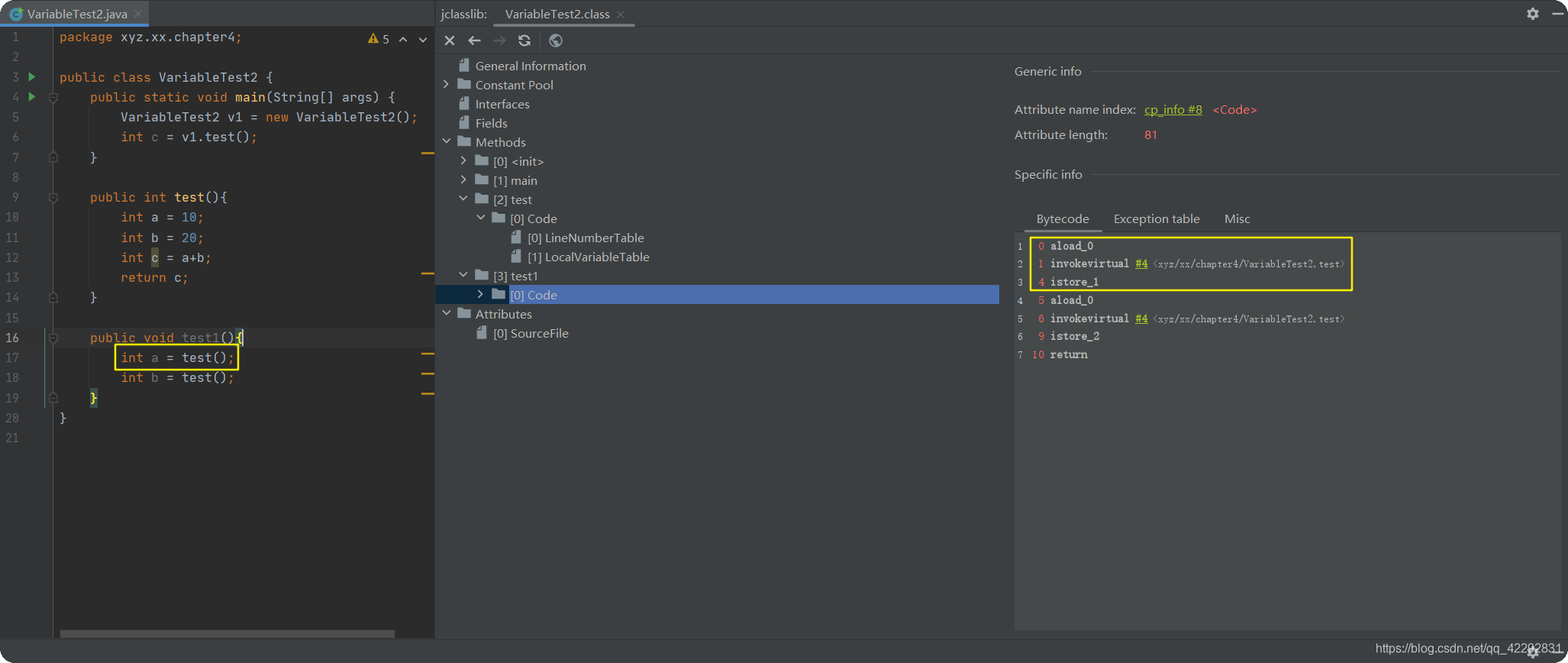 aload_0(将局部变量表索引为0的引用类型加载到操作数栈=this)