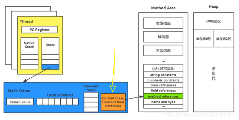 编译时期确定下来的常量池(Constant Pool)在程序运行时会被加载到方法区中成为“运行时常量池”:
