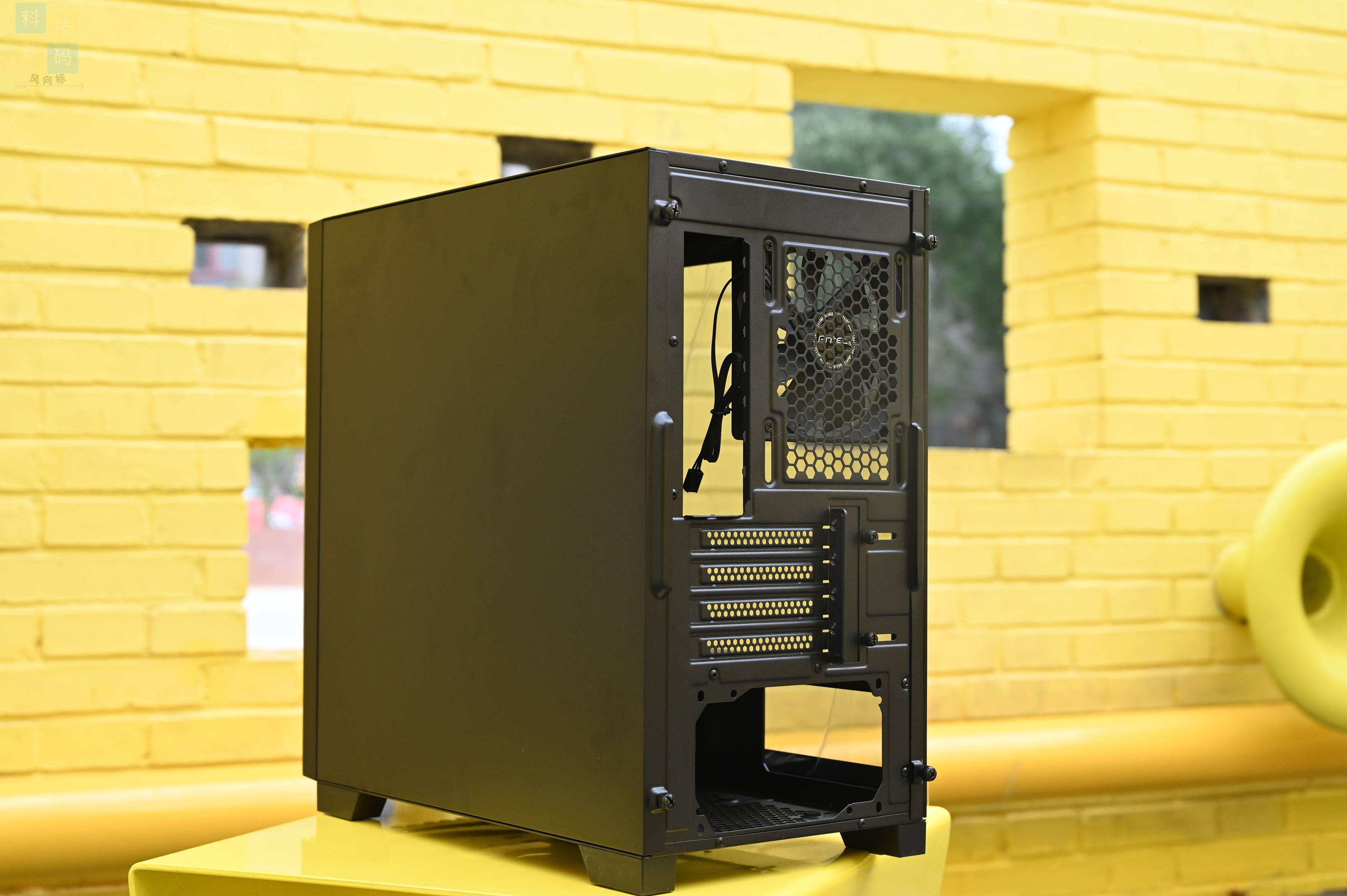 这款机箱的尾部设计比较简单,预装了一个120mm的静音风扇,并且提供了4个扩展槽,只不过扩展槽是一次性的设计,考虑到机箱本身的价位,这点还是可以接受的。