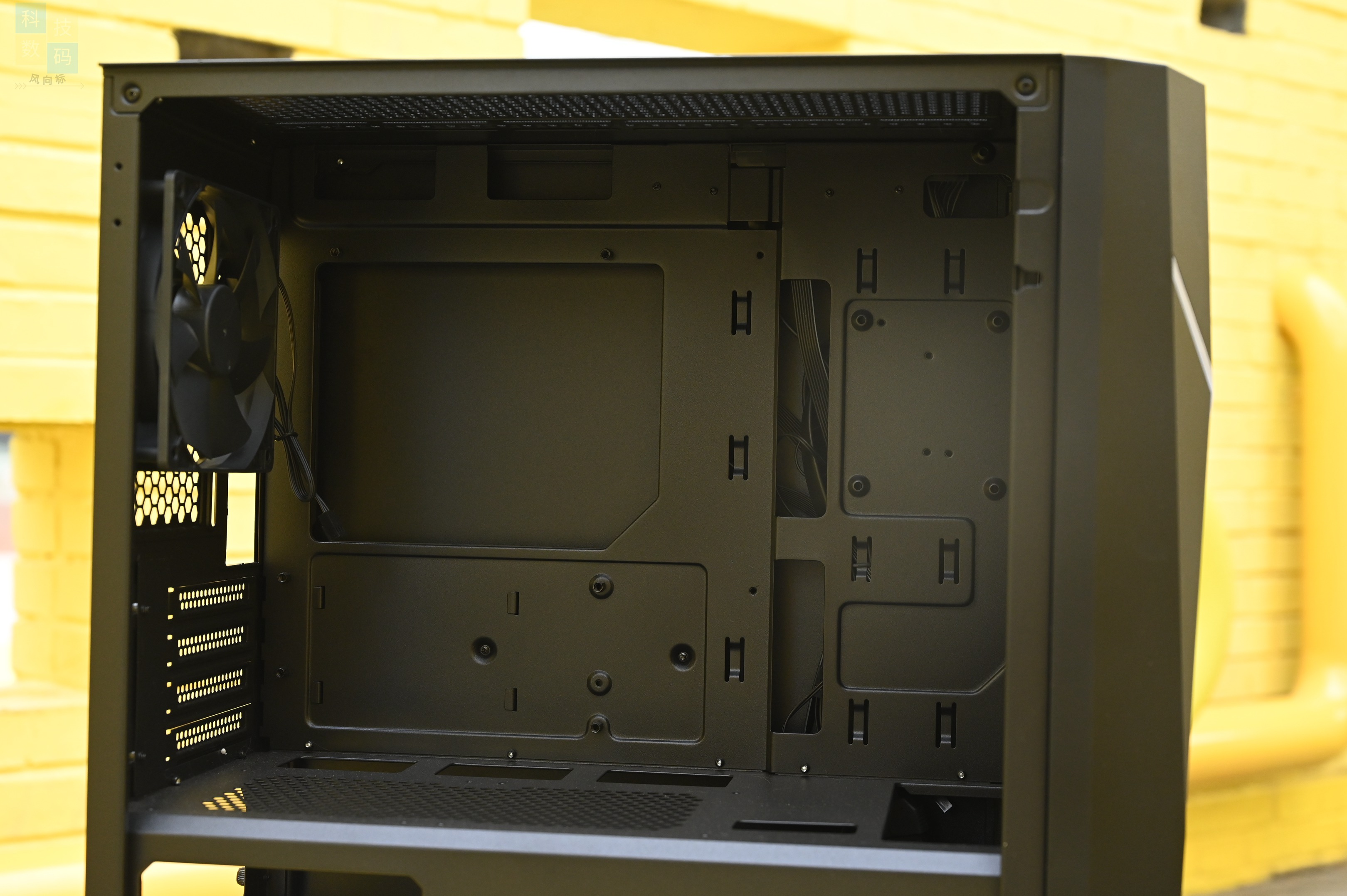 取下安钛克Draco 10的侧透面板后,可以看到机箱内部的空间比较宽敞,毕竟是可以安装280mm冷排的机箱,这样装机的时候会更省事一些。而且这款机箱可以支持165mm高的CPU散热器,显卡限长也达到了350mm,兼容性相对不错。