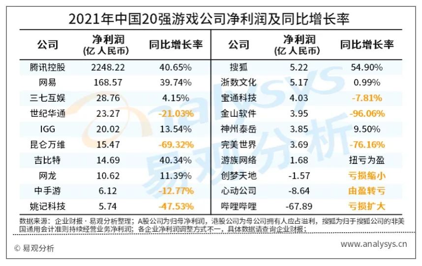 中国20强游戏公司2021年财报分析:业绩大分化时代,开始优胜劣汰