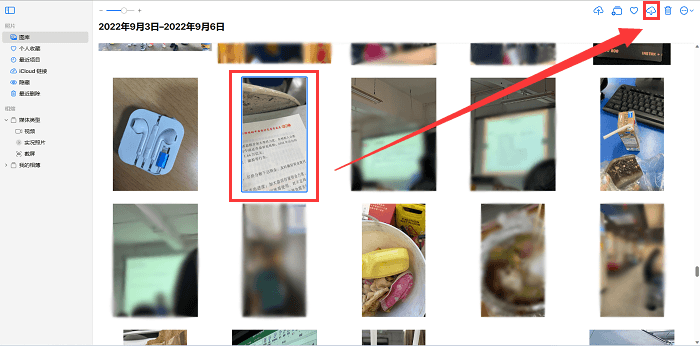 第2步:点击进入【照片】App,在弹出页面中你可以看到云备份的照片和视频。勾选好所需照片和视频后点击右上角的【下载】按钮即可,或者右键将照片和视频“另存为”在电脑上。