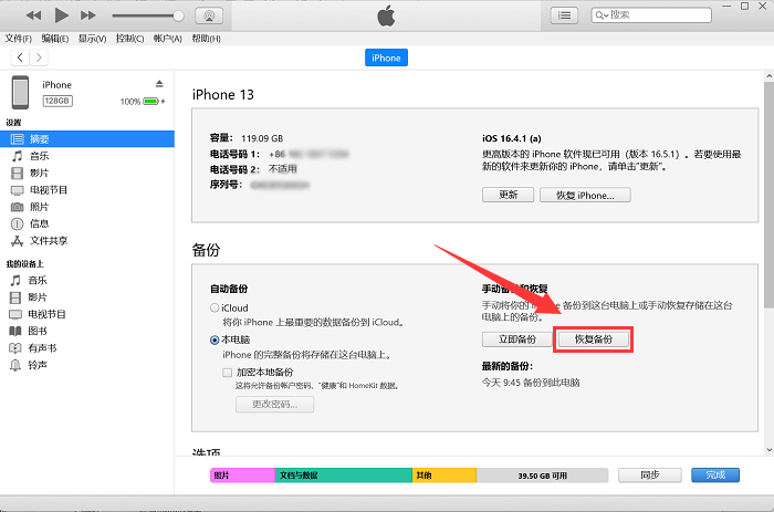 方法三:从iTunes备份中恢复手机删除的照片和视频