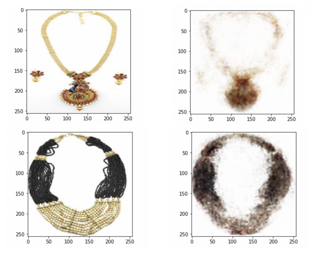 indices = []for i in tqdm(range(len(os.listdir('./flipkart/images/images')))):try:img_name = os.listdir('./flipkart/images')[i]img = load_img('./flipkart/images/images/{}'.format(img_name), target_size = (256, 256))img = img_to_array(img) / 255.0img = np.expand_dims(img, axis=0)pred = latent_space_model.predict(img)pred = np.resize(pred, (16))X.append(pred)indices.append(img_name)except Exception as e:print(img_name)print(e)# Export the embeddings