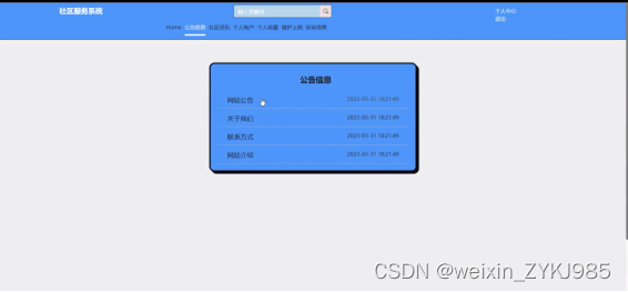 用户在点击导航栏上面的公告信息后,就可以搜索查看公告信息,用户根据自己的喜好可以进行交流,公告信息界面如下图5-10所示。