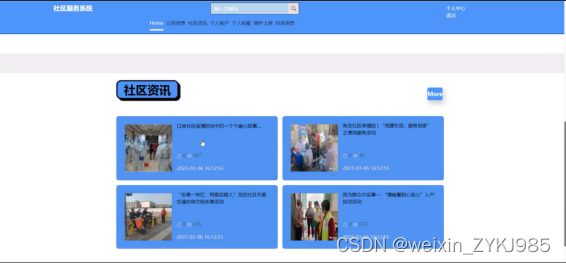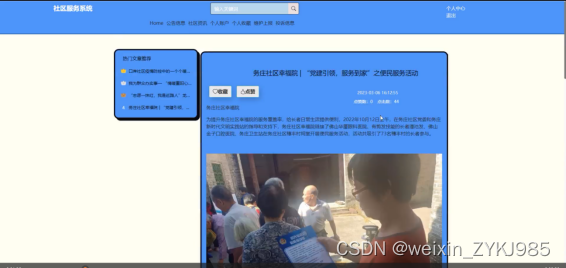 社区资讯,用户可以筛选、查看管理员发布的所有社区资讯信息,并可进行收藏、点赞、发表评论等操作,社区资讯如图5-8 5-9所示。