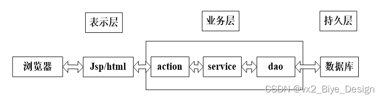 目前B/S体系的系统主要的数据访问方式是:通过浏览器页面用户可以进入系统,系统可以自动对用户向服务器发送的请求进行处理,处理请求是在系统后台中进行的,用户在浏览器页面上进行相应操作,就能够看到服务端传递的处理结果。养老院管理系统主要分为视图-模型-控制三层架构设计。在视图层中,主要是操作在服务器端向客户端反馈并显示的数据,在模型层中,主要处理相关的业务逻辑、数据整合等,最后的控制层它介于视图和模型之间,主要是调整两层之间的关系,最终落实数据的传递。