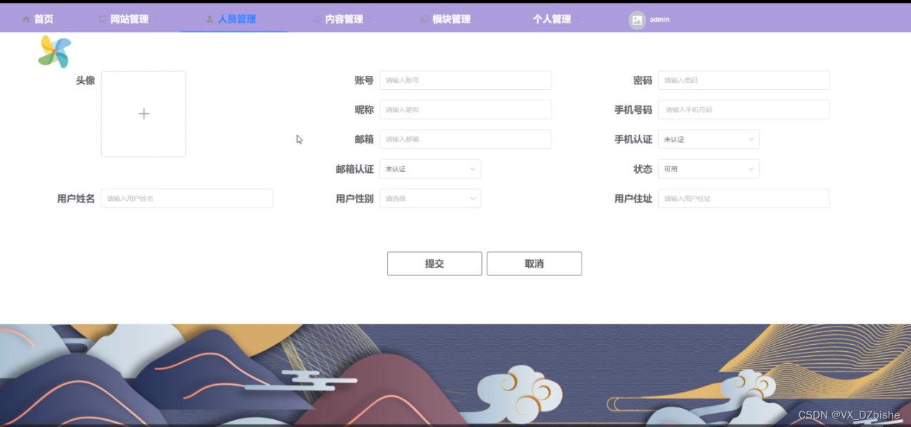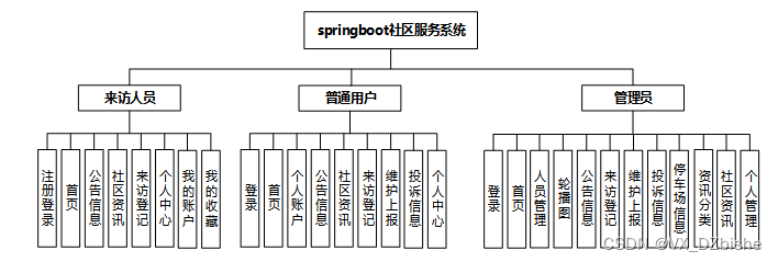 (1)功能要求:完成后台首页、个人管理、网站管理(轮播图、公告信息)人员管理(普通用户、来访人员、管理员)内容管理(社区资讯、资讯分类)模块管理(来访登记、维护上报、投诉信息、停车场信息)等功能模块。