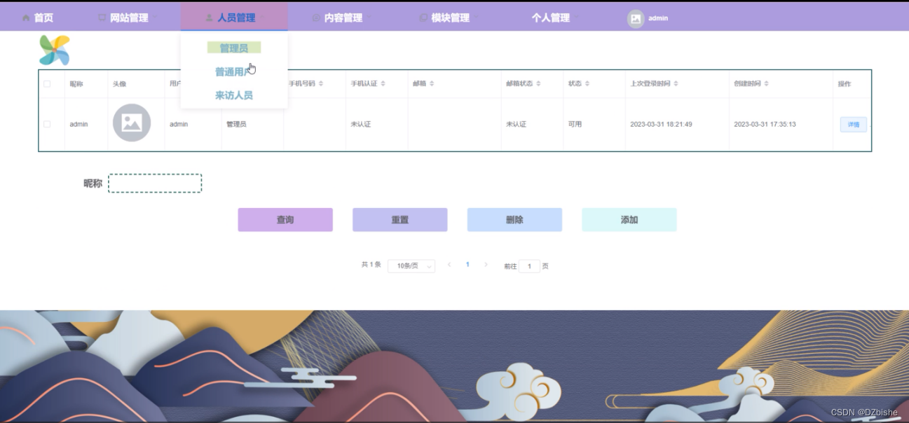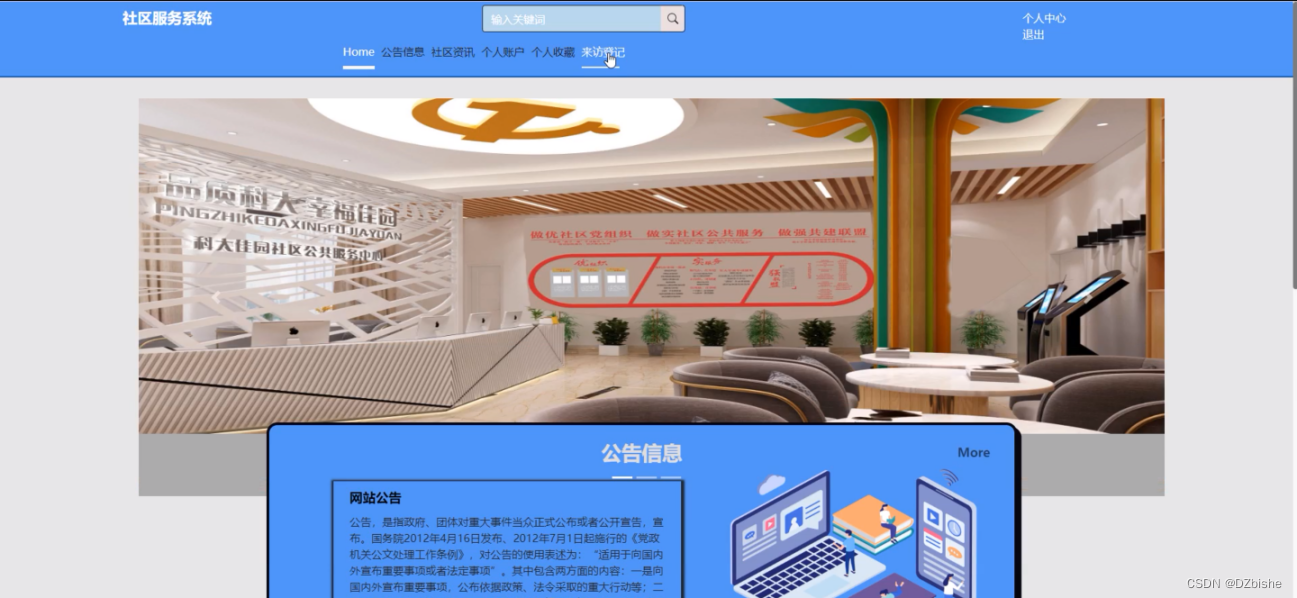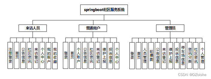 (1)功能要求:完成后台首页、个人管理、网站管理(轮播图、公告信息)人员管理(普通用户、来访人员、管理员)内容管理(社区资讯、资讯分类)模块管理(来访登记、维护上报、投诉信息、停车场信息)等功能模块。