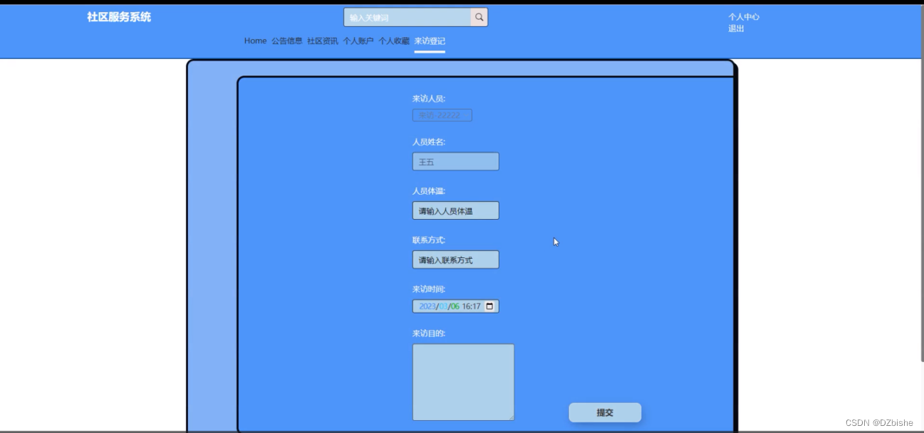 图5-16来访登记界面图模块名称
