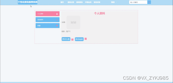 - 操作简单方便、系统界面安全良、简单明了的页面布局、方便查询个性化资讯推荐系统相关信息。