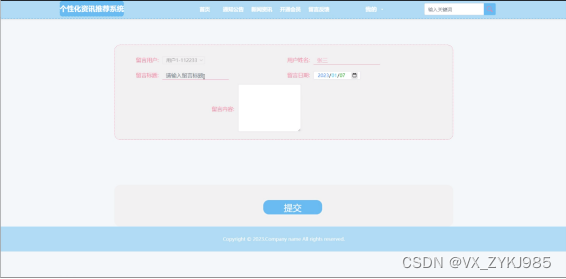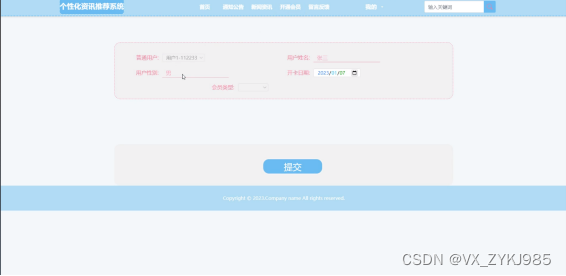 The database used in this personalized information recommendation system is MySQL, which is developed using spring boot technology. In the design process, the system code is fully guaranteed to be readable, practical, extensible, universal, easy to maintain, easy to operate and concise.