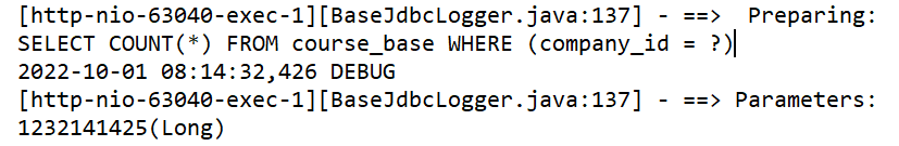 跟踪持久层日志发现已将机构id传入dao方法,拼装sql语句,查询本机构的课程信息