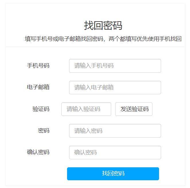 需求:忘记密码需要找回,可以通过手机号找回密码,通过邮箱找回密码以及人工通道。