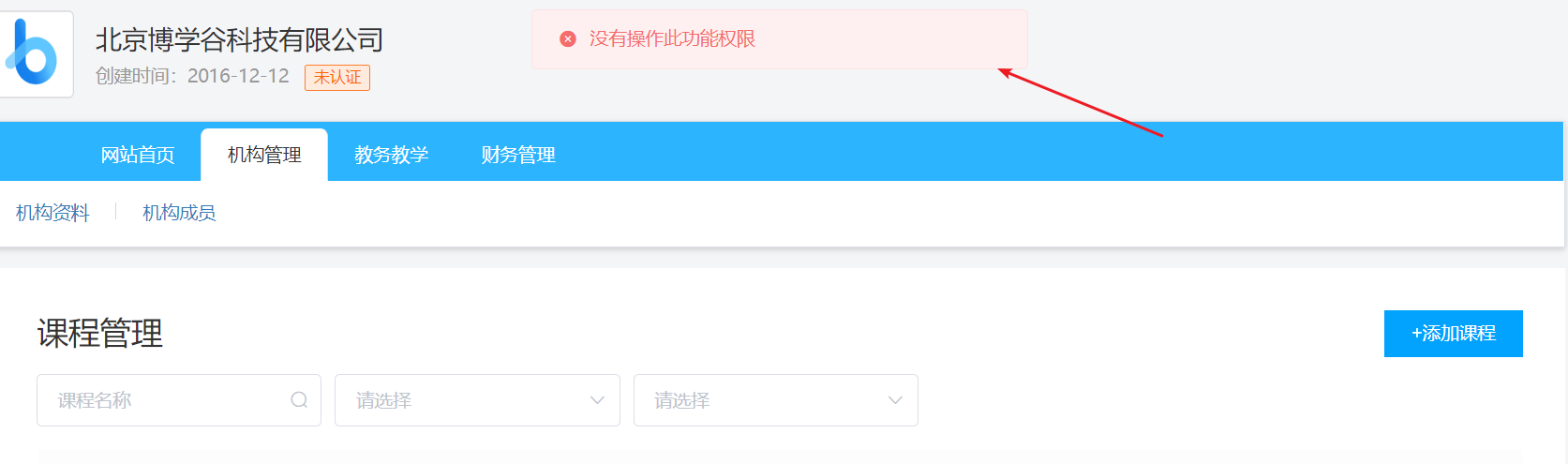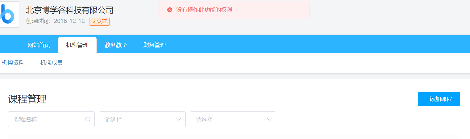 我的课程,教学机构只允许查询本教学机构下的课程信息。