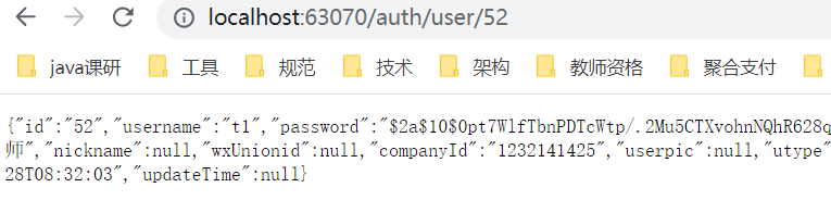 1、访问http://localhost:63070/auth/user/52 可以正常访问