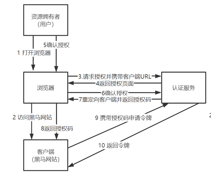 认证通过由认证服务向给用户颁发令牌,相当于访问系统的通行证,用户拿着令牌去访问系统的资源。
