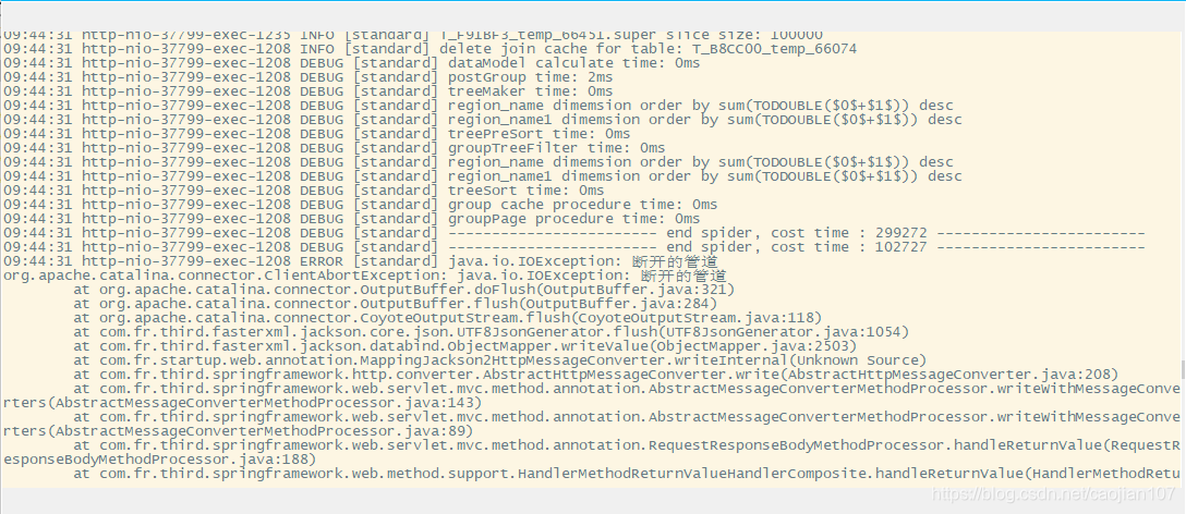 初步判断为网络问题。看到日志中load data的时间很长,有的40多s,想起impala数据源是在阿里云上,而帆软服务在IDC机房,于是切换数据源为IDC机房mysql,速度问题得到解决。