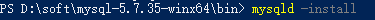 进入mysql安装bin目录,执行mysqld -install命令进行安装