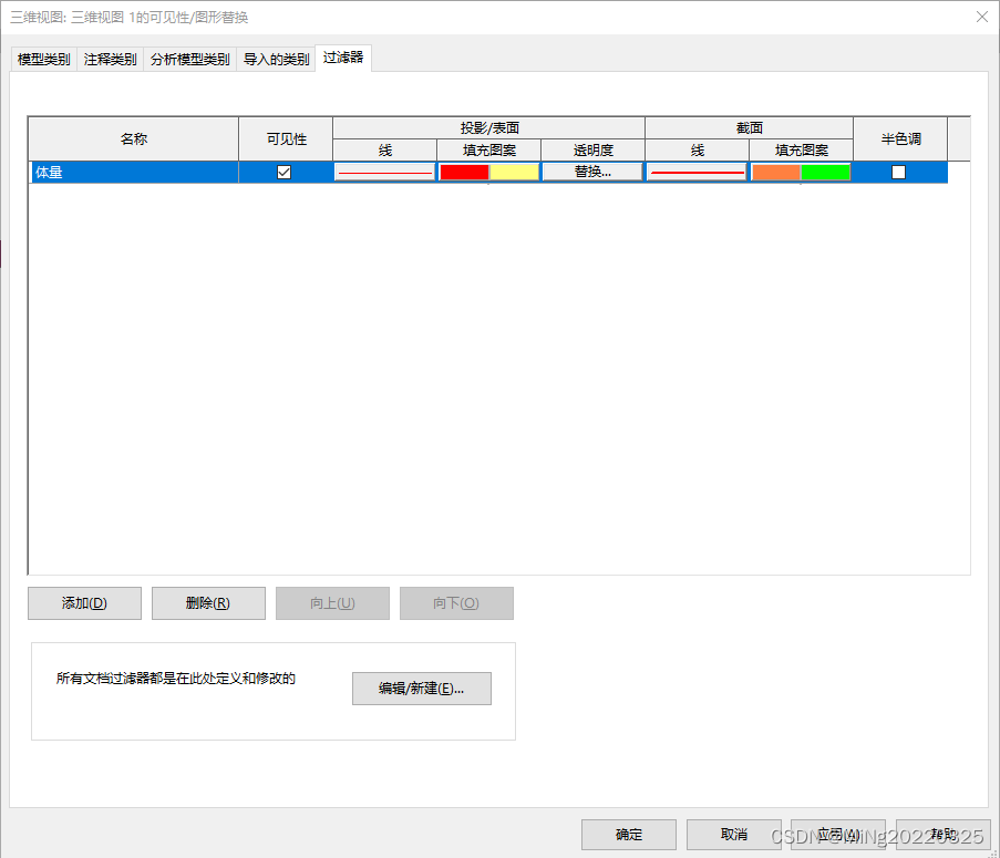 在Revit【视图】→【可见性/图形】中,可以通过自定义过滤器的方式获得具有相同特征的构件,并进一步设置构件在指定视图中表面、投影、截面的线和面的可见性、填充图案、填充颜色等属性。Revit二开应该如何实现此功能呢?