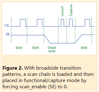 保持scan_enable = 0,在第二个功能时钟脉冲( cap ture时钟) C会捕获这个变化。如果在第二个时钟C捕获到了0,意味着在一个周期内完成了所需的翻转。