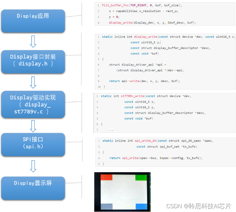 显示屏的驱动中实现了display_driver_api接口,并通过Include/drivers/display.h封装调用接口供上层应用使用。