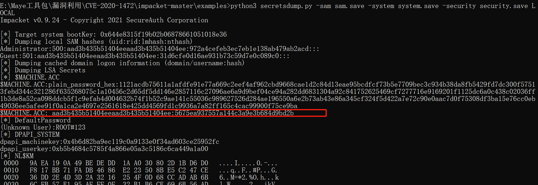 python3 secretsdump.py -sam sam.save -system system.save -security security.save LOCAL