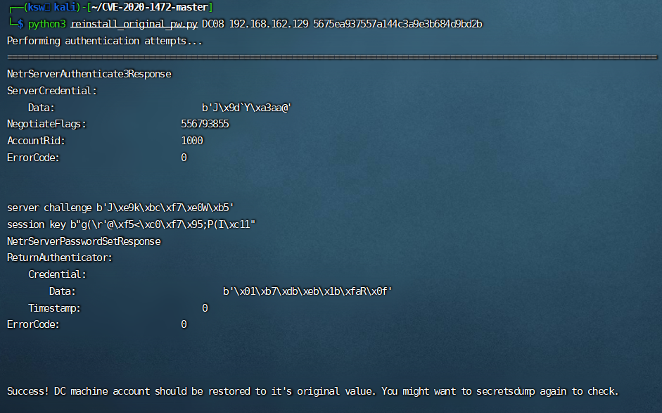 python3 reinstall_original_pw.py DC08 192.168.162.129 5675ea937557a144c3a9e3b684d9bd2b