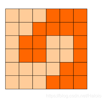 }void dfs(int xa, int ya, int xb, int yb){if(!xa || !xb || !ya || !yb || xa==6 || xb==6 || ya==6 || yb==6){ans++;return; }for(int i=0; i<4; ++i){int x1 = xa+dir[i][0], y1 = ya+dir[i][1];int x2 = xb+dir[(i+2)%4][0], y2 = yb+dir[(i+2)%4][1];if(in(x1, y1) && in(x2, y2)){arr[x1][y1] = arr[x2][y2] = 1;dfs(x1, y1, x2, y2);arr[x1][y1] = arr[x2][y2] = 0;}}