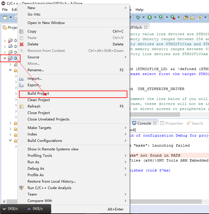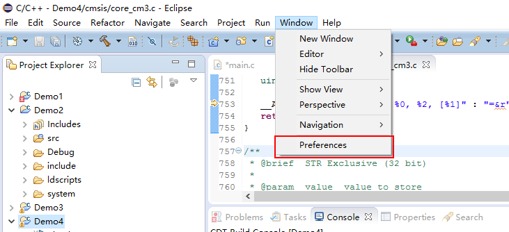 正如在MDK环境下开发我们需要配置define项,include包含项和debug项一样,在eclipse也要做这些工作。