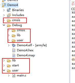 于是我们来看看编译输出的文件夹,即debug文件夹,发现只有3个文件夹有输出,启动文件确实没有输出,为什么呢?初步怀疑是Eclipse没有识别启动文件。