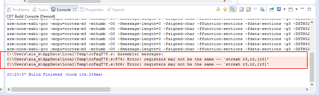 好了,问题找到了,在这两条指令的=r中间加上一个&符号即可。两条指令中都要加。然后再编译