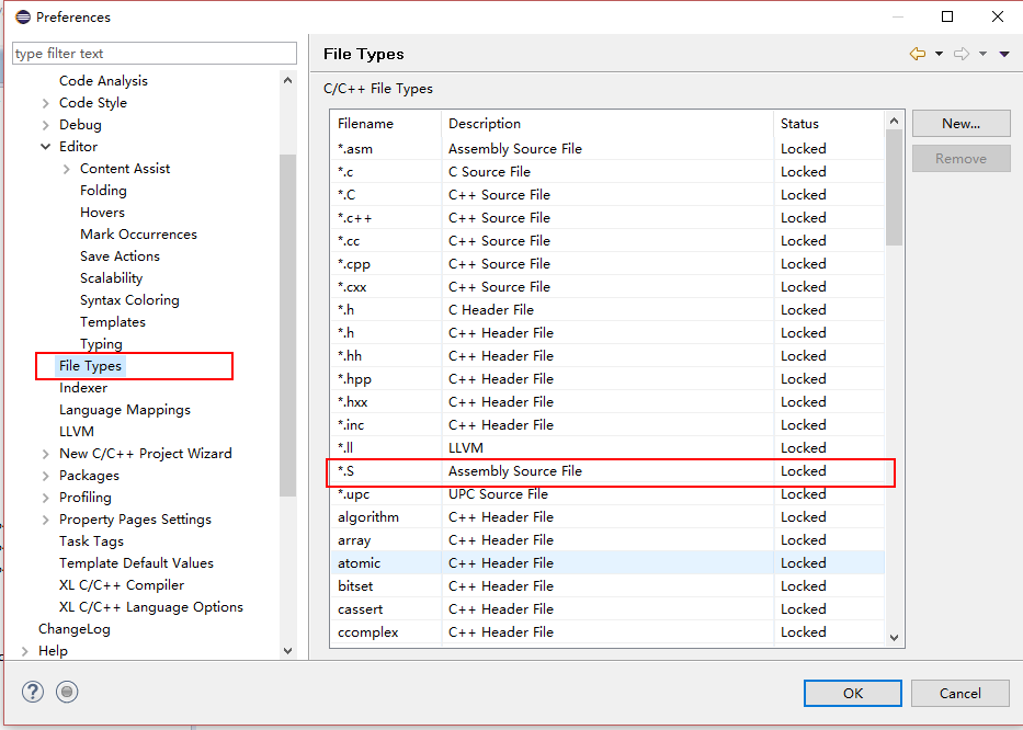 然后找到File Type,我们可以看到,软件能够识别的汇编文件拓展为*.S是大写的S,而我们工程中的启动文件是小写的s,所以没有识别出来,我尝试将小写s格式添加进去发现添加失败,提示跟大写S重复,好吧,我们直接将启动文件改成大写S吧。