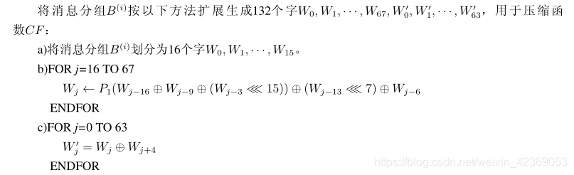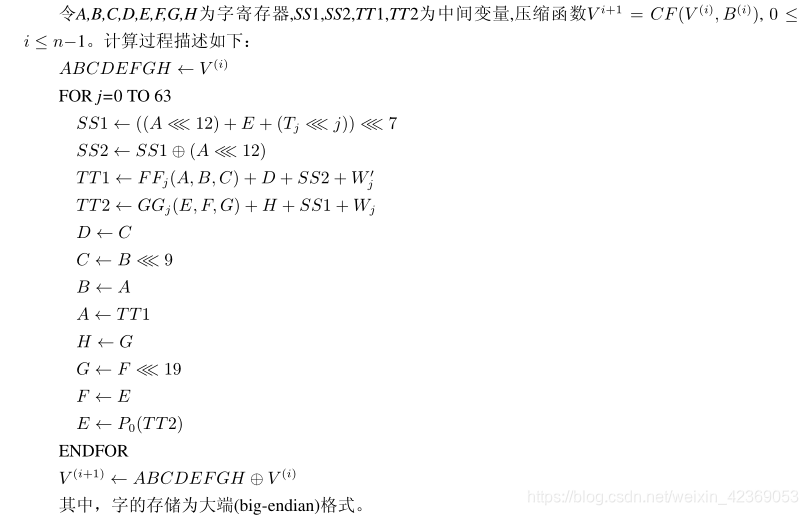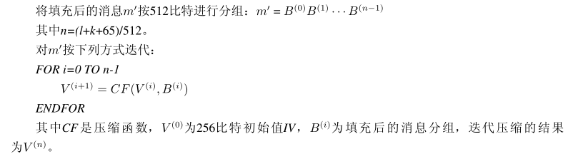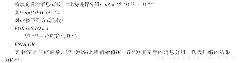 SM3对长度为小于2^64 比特的消息m, SM3杂凑算法经过填充和迭代压缩,生成杂凑值,杂凑值长度为256比特,具体流程如下: