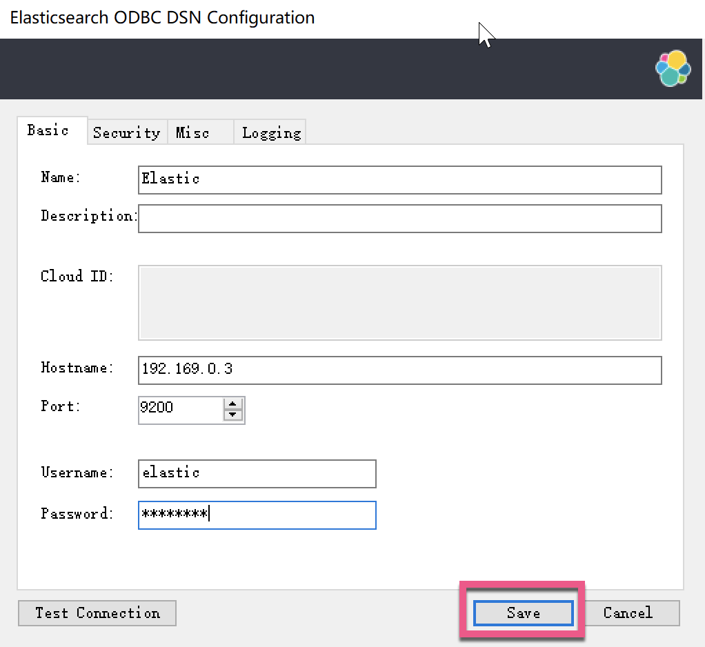 点击 Test Connection。如果我们看见 Connection Success,则表明 ODBC 和 Elasticsearch 的连接是没有任何问题的。